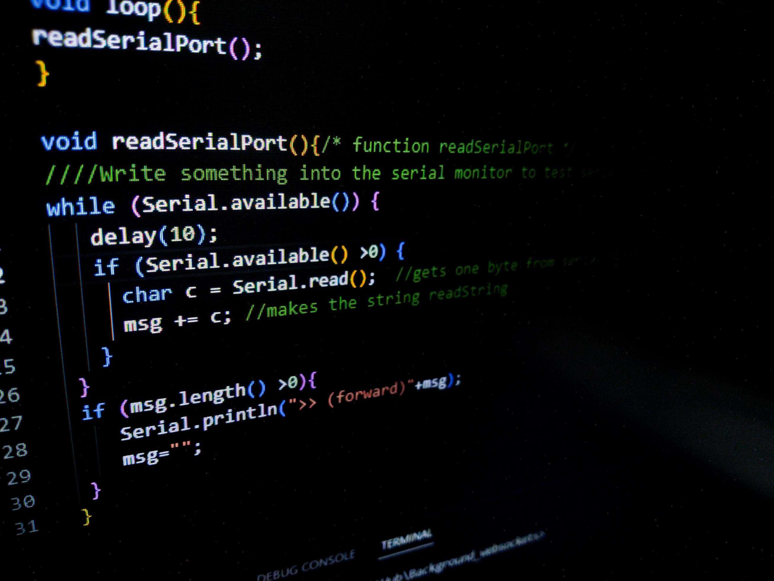 Programming code on a computer screen. Source code photo. Technology background. Pro Photo