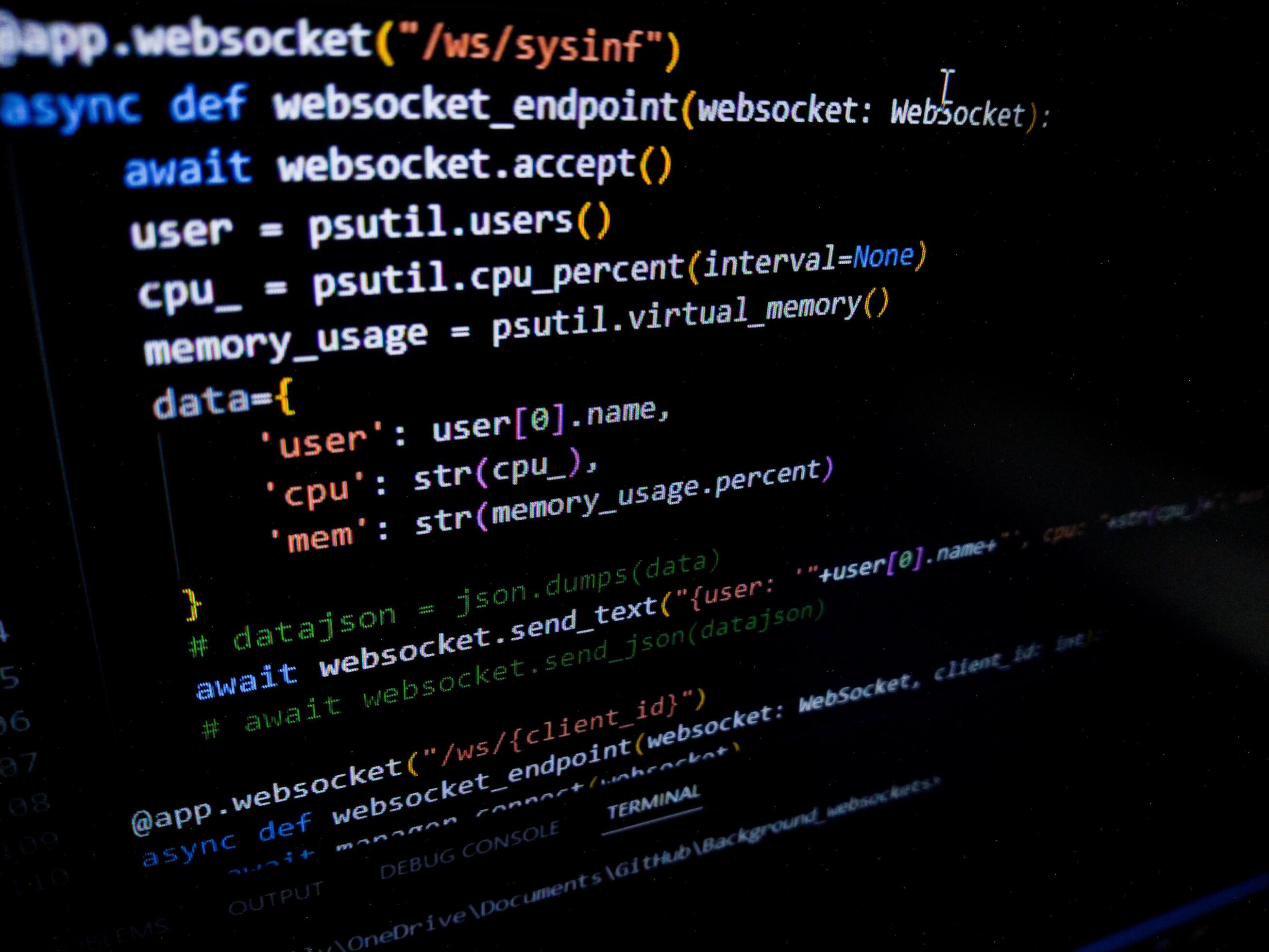 Programming code on a computer screen. Source code photo. Technology background. Pro Photo