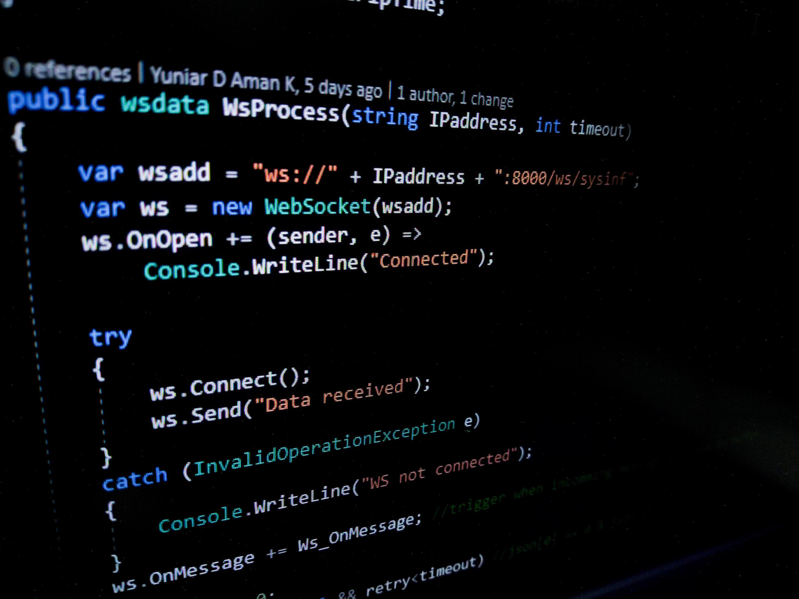 Programming code on a computer screen. Source code photo. Technology background. Pro Photo