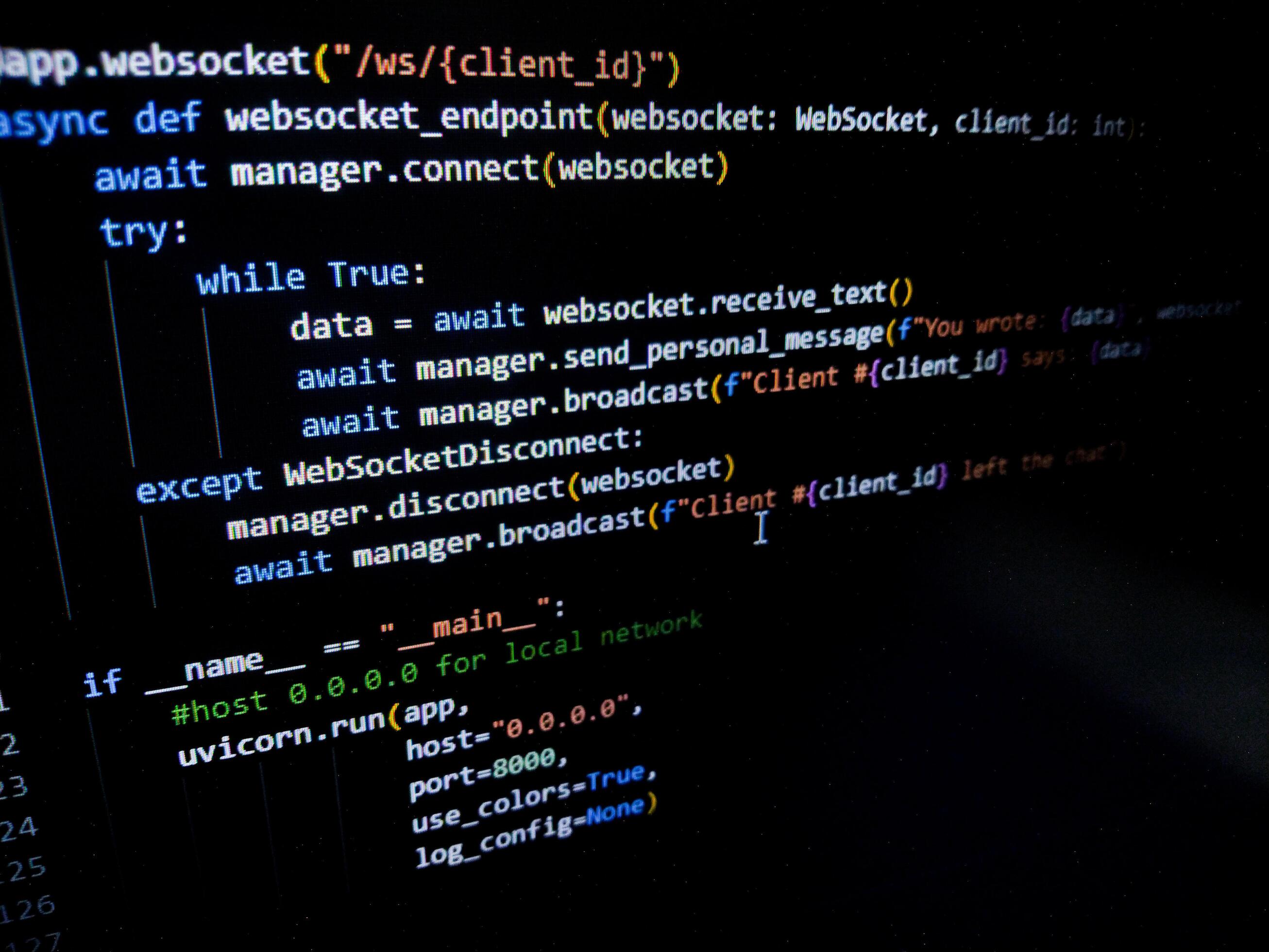 Programming code on a computer screen. Source code photo. Technology background. Pro Photo