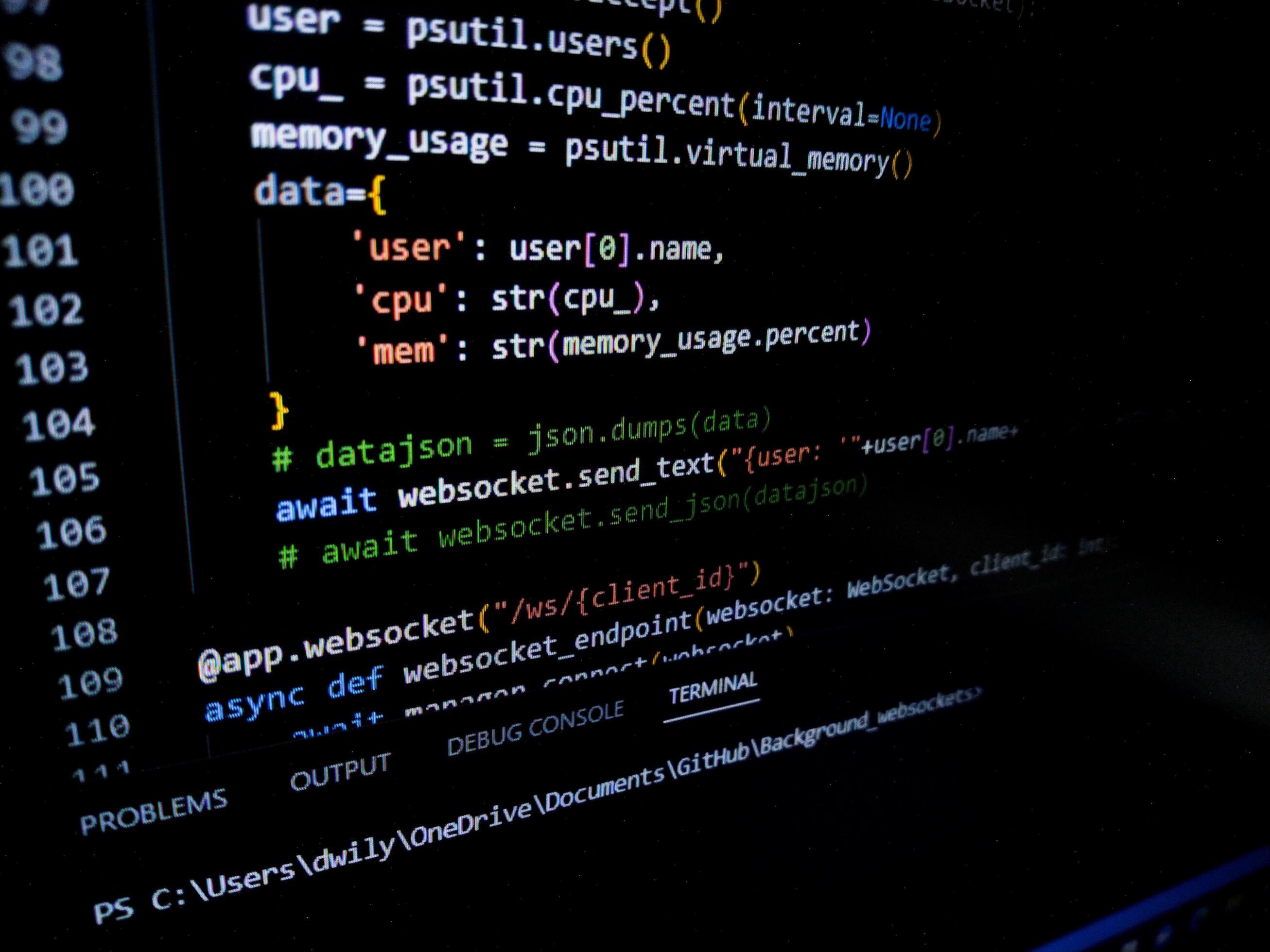 Programming code on a computer screen. Source code photo. Technology background. Pro Photo