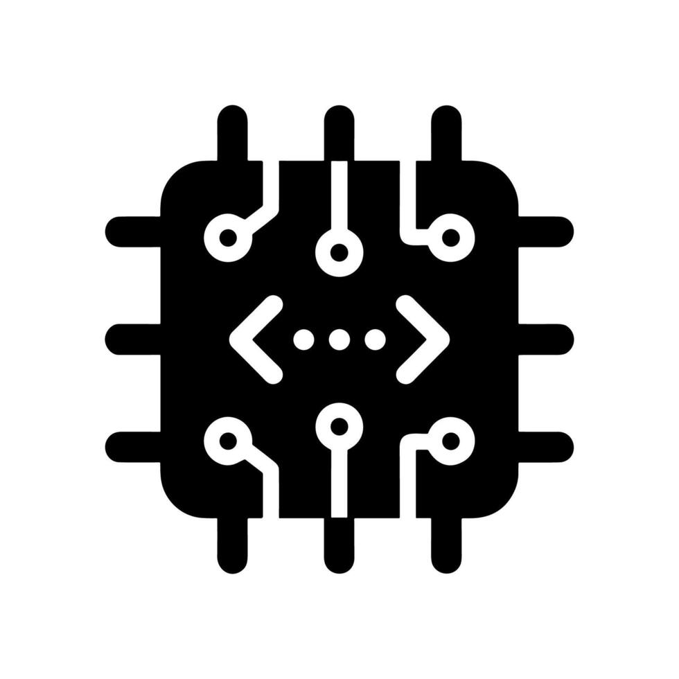 Flat Processor Code Computer Technology Digital Chip Icon vector