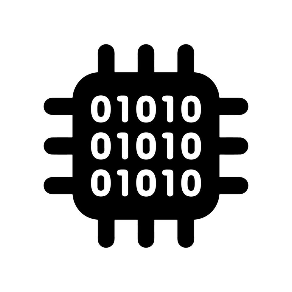 Solid Style Microchip with Binary Code Data Shape Icon vector